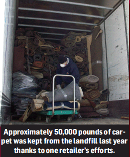 AUSTINTOWN, OHIO—Ryan Carpet Sales & Service recently dropped 50,000 pounds after announcing its commitment to help keep carpet out of the landfill. After saving carpet from dozens of jobs since the summer of ’08, the store recently delivered its first tractor-trailer of old, replaced carpet— totaling 50,000 pounds—to a local Mohawk reclamation center last year. And, Ryan’s has no intention to stop shedding the weight.