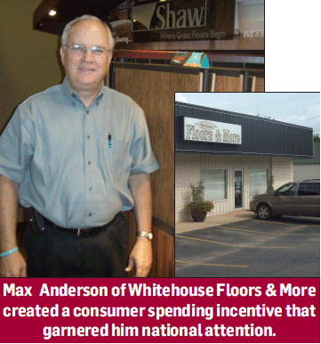 So, the man who purchased the 10-year-old Whitehouse Floors & More last January created his own package that incorporated other merchants in the local area. Whitehouse is seven miles from Tyler, Tex., with a trading area of 200,000.