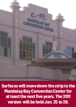 With Surfaces 2010 in the books, all eyes fall to next year when the show moves to a new venue for the first time in its 22 years in Vegas. Surfaces 2011 will take place down the Vegas Strip at the Mandalay Bay Convention Center, Jan. 25 to 28.