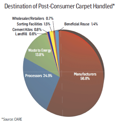 For more information or to learn more about how to recycle used carpet, visit the CARE Web site at carpetrecovery.org.