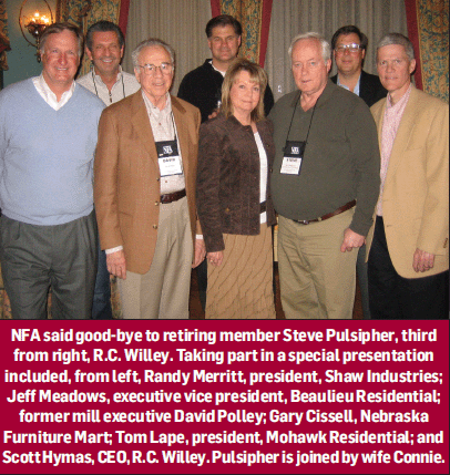 Pulsipher retiringThe Banff meeting marked the final soiree for NFA veteran Steve Pulsipher, director of flooring for R.C. Willey, Salt Lake City, who last year announced his retirement after four decades in the flooring business.