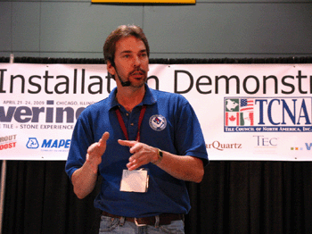 NTCA training director Gerald Sloan will take to the Tile Council of North America’s stage each day at 11 a.m., assisted by NTCA regional trainer Michael Whistler, for a 45 minute demonstration. This year’s topics will include: