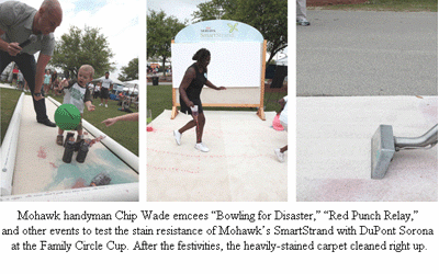 Mohawk presented Mohawk Family Night at the tournament last night, treating kids 16 and under to free admission and letting everyone in attendance take their best shots at SmartStrand with DuPont Sorona carpet during the “Mess-Makers Challenge,” with events like “Bowling for Disaster,” “Red Punch Relay,” and “Balloon Toss” with mustard filled balloons. Participants had a great time creating a monumental mess.
