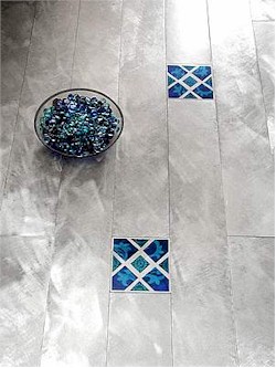 The scientifically engineered glazing of Carina Works’ solid metal floor and wall products allows them to be installed anywhere ordinary ceramic tiles are used. Carefully calculated grinding, brushing, and color treating the solid aluminum material produces a completely handmade, individual work of art with a rich, reflective texture; tasteful, elegant and TOTALLY ORIGINAL. When installed, these pieces come alive with motion and light providing a unique visual experience in color and design that can be appreciated from any angle.