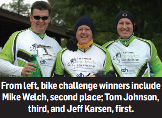 The event was held at the Leroy Oakes Forest Preserve. The decision to go with a 50K distance for the first annual race made the competition fun for everyone. A total of 26 riders signed up for the Challenge, and all but two finished. Mapei Midwest sales manager, Steve Cameron beat Mr. David’s Flooring owner, Dave Zmijewski by just a few minutes; but it was Jeff Karsen, the owner of Carpet Cushions and Supplies in Elk Grove Village, Ill., who won first place, finishing the course in 1 hour and 31 minutes.