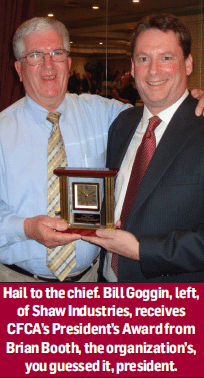 Shaw Industries received the President’s Award for his years of service to the association and his term as a past president of the CFCA, while Tana Sylvia of