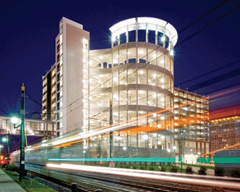 A mosaic mural commissioned for a 12-story parking deck at Center City Green in Charlotte, NC, and composed of approximately 250,000 loose ORGANIKS 100% percent glass tiles was another “PROJECT: Green” honoree. Mosaic designer Jeannette Brossart created the graphic artwork of circular color bursts, and the entire building project, completed in 2009, is registered for Silver LEED status.