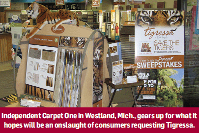 Cathy Buchanan, owner of Independent Carpet One in Westland, Mich., not only has her show floor set up with Tigressa goods but cooked up a list of additional promotions on top of CCA’s offerings. “When you buy a minimum of 50 yards of Tigressa, the consumer will be automatically entered to win four premium seats to a Detroit Tigers-Toronto Blue Jays game,” she reported. A store event at the stadium and an autograph session with the players is also in the works.
