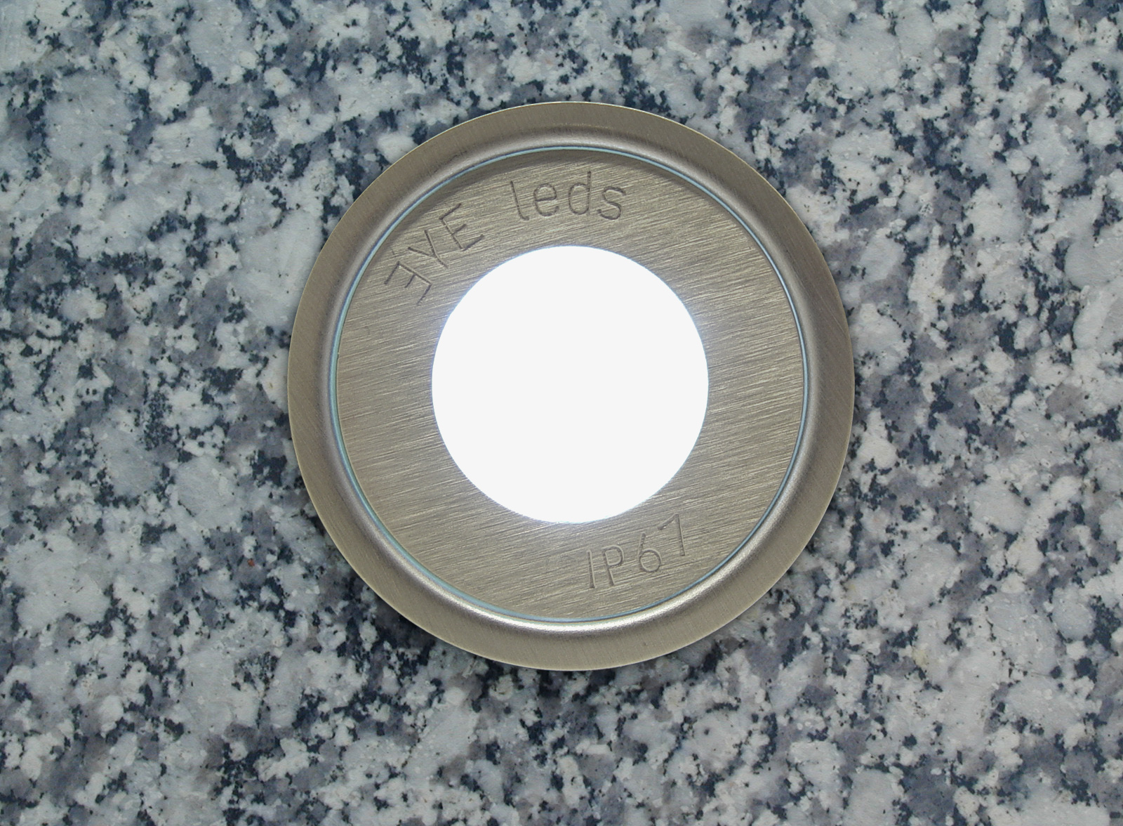 It is important for a natural stone professional to know that strict standards apply for lighting too! All Eyeleds® fittings meet the most recent standard requirements. Since last year both indoor and outdoor floors are subject to the high IP67 rating for light fittings (Very high rating for water and dust resistance of fitting)! The Eyeleds® fittings are also fitted with a scratch-resistant UV-stable seal and are thanks to their 6.5 mm build-in depth capable of being incorporated into essentially every indoor/outdoor floor. The light sources (12V, 0,3W and 25 mA) have an anticipated lifetime of 100,000 hours. Because Eyeleds® believes so wholeheartedly in its product it offers for this reason a product warranty of 3 years. Should despite this there be a problem, a repair kit can be ordered.