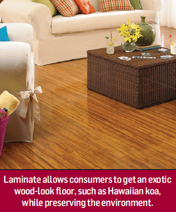 Milton Goodwin, Armstrong’s vice president of laminate and ceramic products. “Your customers can get the look and feel of exotic and domestic woods [without harming the real thing]. Our laminate is made from wood fibers and wood chips—we use everything expect the bark.” In general, he added, laminate uses about 90% of the tree. “Also, we can use any tree—pine, oak, eucalyptus, etc., so you do not need to use trees that are hard to replenish.”
