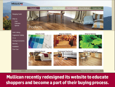 Resulting from a realization that hardwood flooring is just one element in the overall design of a space, Mullican decided to incorporate a Designer’s Oasis in its website. According to Tressa Samdal, marketing coordinator, the feature gives users an opportunity to explore color and design options that are most appropriate for their flooring project.
