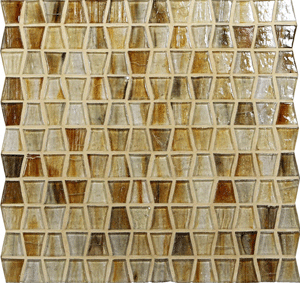 Every individual Tozen glass tile is a unique glass masterpiece. The collection is characterized by individual glass mosaic tiles, each one being shot through with transparent layers of contrasting colors. Trapezoidal mosaics are stacked together creating a unique repeating pattern.