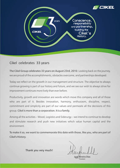 “Looking back on the journey we are proud of our accomplishments, the obstacles we’ve overcome and the partnerships we’ve developed all over the world,” said Pereira Dias, president of Cikel Group. “We reflect on our history and the growth we’ve enjoyed and look ahead to continuing on this path as one of the main objectives for the future. Growth, innovation and productivity are words that move this company and all of those who are a part of it. We intend to continue to develop and stimulate research, pushing new initiatives that value human capital and protect the environment. Cikel is far more than a corporation. Cikel is a family.”
