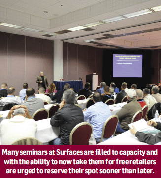 Thornton added only eight of the sessions from this past Surfaces are being repeated. “The entire program has been carefully developed to cover a wide array of the most relevant topics in the floor covering and stone industries.”