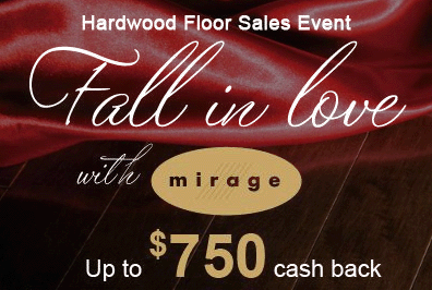 The “Fall in Love with Mirage!” sales event runs through Nov. 20 and gives consumers the opportunity to earn a rebate of up to $750 on the purchase of any qualifying product. During the event, consumers can take advantage of a mail-in cash rebate on all Mirage Classic, Engineered and Lock lines—regardless of species, color or board width, noted Luc Robitaille, vice president of marketing.