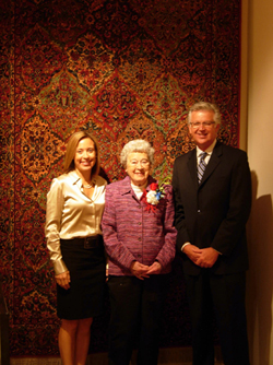 Picture Caption: Celebrating the return to the Windy City of the original Karastan Multicolor Panel Kirman 791 from the 1933 Chicago World’s Fair were Anne Poglitsch (Karastan sales rep), LaVerne Breisch (Poglitsch’s mother) and Kevin Welch (Midwest regional vice president for Karastan Rugs). Mrs. Breisch walked across the 1933 World’s Fair rug when she was seven years old.
