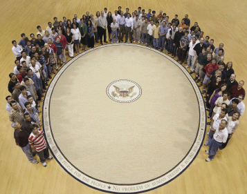 GRAND RAPIDS, MICH.—Workers at Scott Group Custom Carpets have been “bursting at the seams” with the knowledge the magnificent 23 x 30-foot oval rug they’d been working on was destined for the Oval Office.
