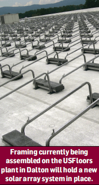 DALTON—USFloors has commenced the third phase of its solar array system on its manufacturing plant here. The 365 kw installation will bring its total output to well over half a Megawatt, making USFloors the largest producer of solar energy in the state of Georgia.