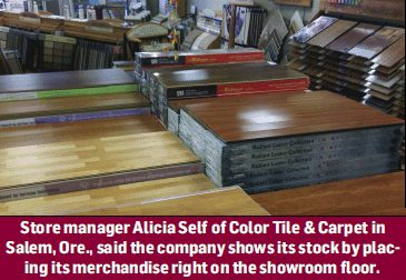 Color Tile & Carpet also displays its stock merchandise on the showroom floor. “This gives the customers a way to touch our products and get a better idea of the makeup,” Self said. “It also allows her to take it home with her that day.”