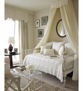 Designers Jim and Phoebe Howard selected Karastan's Fifth Avenue to create the dreamy guest bedroom