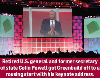 Saying the green building world is on the right track, Powell told the crowd “your work is very important not only for improving energy efficiency, but also for creating growth for people in need.” From protecting the environment, reducing demand for energy, creating jobs and strengthening national security, “you need to see yourself as part of a broader movement with global impact.”