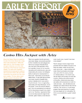 In addition to a cover story featuring exclusive work done at the Mount Airy Casino, the premiere Arley Report includes industry commentary, new products, manufacturer input, company updates and a regular column by a contributing member of the national trade press covering tile and stone, architectural & design, kitchen & bath and other areas, as well.