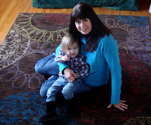 Photo Caption: The winner of Karastan’s Home for the Holidays contest, Kelly Wright Barrere, and her daughter, London, enjoy their new Pavilion Twilight rug.
