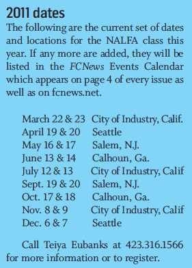 Bill Dearing, NALFA’s president, said classes will once again be held in California, New Jersey and Georgia with the addition of Seattle, in 2011.