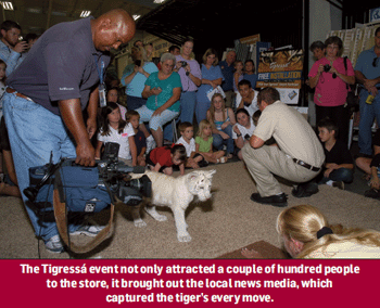Upon some investigation, Braden found she could get a live tiger cub and other animals to the store by working with the Alabama Gulf Coast Zoo.