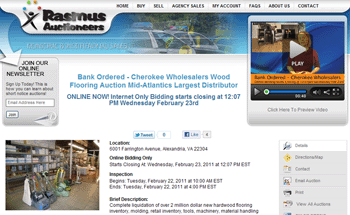 These four online only auctions will begin closing on Wednesday, February 23, 2011. Bidders must register prior to bidding. Items may be inspected during scheduled preview times. For more details and terms, visit www.rasmus.com or call (703) 768-9000.