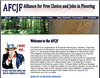 AFCJF is a direct response to the group formed by the companies that filed the petition, known as the Coalition for American Hardwood Parity (CAHP). Joe DuPress of Custom Wholesale Floors and an AFCJF director said if CAHP’s petition is successful, “it will have the effect of driving independents out of the market by cutting them off from their source of supply. The real target of this case is not the Chinese, but the first stage of a strategy to hobble the U.S. companies that compete with the petitioners.”