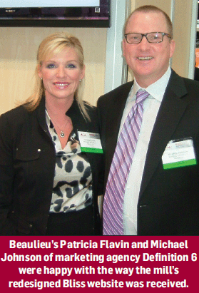 Beaulieu of AmericaThere was a lot of news from the mill’s booth, including a totally new website. “The entire purpose of this new site is quite simple,” said Patricia Flavin, senior vice president of marketing. “We want to support our dealers with the best website possible to entertain and educate the floor covering customer about Bliss product and drive them to Bliss dealers to make the sale.”