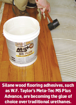 Like Swezey, Gary Liddington, business manager, manufacturing brands for W.F. Taylor, believes the tendency of exotic species to be more affected by moisture than common domestic species that require higher strength and low (or no) moisture wood flooring adhesives. “Modified silane wood flooring adhesives are rapidly becoming the adhesive of choice over traditional urethane adhesives, not only because of their high strength and zero solvent and water content, but because of their low VOC emissions, which makes them a much better environmental fit than urethanes.”