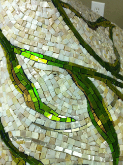Richey has worked in the mosaic medium for more than 20 years creating custom residential and commercial mosaics. She earned international recognition for several recent projects, and along the way has relied on both the strength and the finesse of installation products manufactured by LATICRETE. For La Corrente she layered, sanded and even tinted LATICRETE® 254 Platinum thin-set with a light pink for demarcation. Last year she lent her expertise in the mosaic arts to Gary Drostle’s award-winning River of Life mosaic mural and discovered the finesse of LATICRETE PermaColorTM Grout.