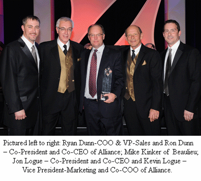 According to Mike Kinker, VP National Accounts for Beaulieu, the carpet maker was responsible for one of the most successful display programs featuring STAINMASTER with Magic Fresh, Beaulieu’s built-in proprietary odor reducing treatment. “We are proud to accept this award in behalf of the entire Beaulieu family. We also want to recognize the Alliance Group and their CarpetsPlus and Carpetland members, for without their acceptance of our products and programs none of this would be possible,” stated Kinker.