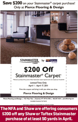 Tuftex Stainmaster carpet purchase of 50 yards or more, redeemable at their nearest NFA member store.