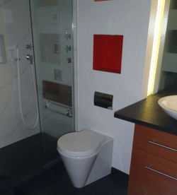 “With large format tiles and thinner grout lines I was worried about the water getting caught up and discoloring the grout,” Whipple said. “The design meant fewer outlets for the excess water to runoff to the drain. We had very few that went all the through to the shower pan. Everything came out perfectly.”