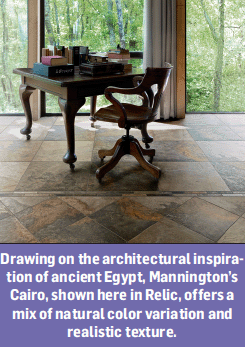 ManningtonDrawing on the architectural inspiration of ancient Egypt, the company’s new Cairo series offers a vibrant mix of natural color variation and realistic texture, noted