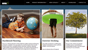 The new site design represents an entire overhaul of the Nova online identity. The site navigation was streamlined in such a way to make both finding a specific product and browsing entire product catalogs quick and easy. The new Floor Finder element allows site visitors to search for flooring or decking products by color, species, texture, or any combination of the three. The online catalog gives visitors another way to explore the many products Nova offers by separating items by product type, finish, species, and more.