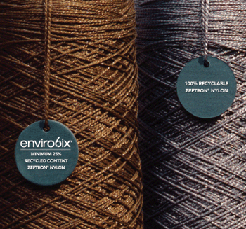 Antron Bio_Legacy, a type 6,6, nylon that contains materials derived from renewable resources, in this case castor bean oil. Meanwhile, Mohawk’s SmartStrand with DuPont Sorona polymer incorporates corn sugar.