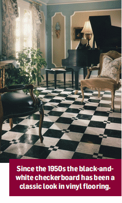 With few exceptions, most residential tile products were 12 inches and sold with either a self-adhesive backing or dry back. The self-adhesive products were purchased by stocking retailers for sale to do-it-yourselfers while the dry back goods were sold by what we call today specialty dealers or those who both sold and installed the floor. In addition to residential tile, each manufacturer offered a commercial selection of what we now know as vinyl composition tile (VCT) in 12-inch size and in either 3/32- or 1/8-inch thicknesses.