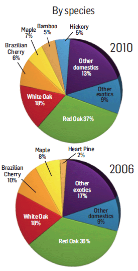 With consumers still looking for more value-oriented products, sales of high-end exotic species such as Brazilian cherry have lost market share though it is still the most popular non-domestic wood used for flooring.