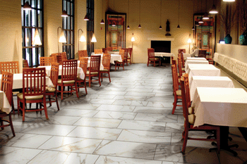 The collection is offered in four modern sizes including 12” x 24” tiles, complete with 3” x 12” bullnose pieces and 2” x 2” mesh-backed mosaic sheets, all using the same glaze and high-definition digital inkjet technology. Calacata glazed porcelain tiles are available in 12” x 24”, 12” x 12”, 6” x 6” and 3” x 6” formats. Due to the recycled content of each tile, projects which include Calacata qualify for LEED points.
