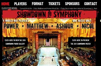 The 2011 “Showdown at Symphony,” presented by First Republic Bank, features four squash competitors that have achieved World No. 1 status or have won the World Open. The players competing this year are Nick Matthew from England, Ramy Ashour from Egypt, Jonathon Power from Canada and Peter Nicol from England.
