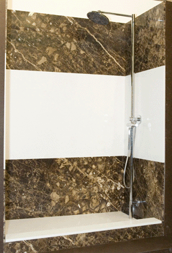 Erlebach pointed out that there are three types of showers for this kind of project: ADA, Standard and Standard-extended. Potential customers can go online to find out about the offering, and will actually be able to link on to www.quickdrainusa.com , click on the “tub-to-shower” conversion icon and then select the system’s various components, including quartz wall panels.