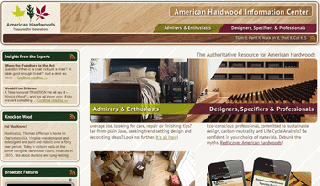 The site features two main sections designed to make it easy for visitors to quickly find the information they are looking for: Admirers and Enthusiasts, with information for consumers and homeowners on choosing, selecting and caring for American Hardwoods, as well as an inspiration photo gallery; and Designers, Specifiers and Professionals, with information about using American Hardwoods in building and remodeling projects.