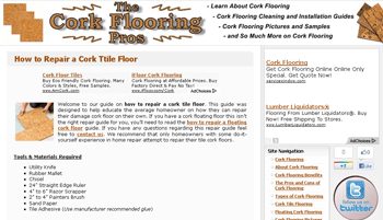 Chicago, IL (PRWEB) November 14, 2011 - Cork Flooring Pros is proud to announce today that they have published two new cork floor repair guides on their website. These guides were designed to help educate the average homeowner on how they can repair their cork tile floor or floating cork floor. “The Cork Flooring Pros website was designed to educate consumers on cork flooring, so we decided we should also publish guides on how to properly repair a cork floor,” said Brighton Early. They also announced their plans to launch more educational articles related to cork flooring in the near future.