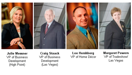 HIGH POINT, N.C. and LAS VEGAS (Nov. 29, 2011) - International Market Centers, L.P. (IMC), the world's largest operator of premium home furnishings, gift and home décor showroom and exhibition space, announced promotions of four key members of its High Point N.C.- and Las Vegas-based leasing teams. Julie Messner, Craig Staack, Lee Hershberg and Margaret Powers were promoted to Vice Presidents responsible for advancing new business opportunities for IMC's iconic portfolio of properties while offering more value to its showroom partners.