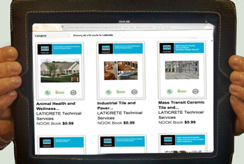 LATICRETE, a global manufacturer and leader of premium installation and finishing systems for the building industry, has developed a library of LATICRETE Technical Design Manuals which are now available as eBooks for the iPad from the online Apple iBook store, for the Kindle on the Amazon website… and, for the Nook® on the Barnes & Noble online Nook Book store, as well.