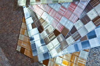 State-of-the-art "peel & stick" technology specifically formulated for glass mosaics, makes affixing each mesh-mounted mosaic tile section extremely easy, and, this process eliminates the messiness of having to apply adhesive directly to one's wall. Additionally, each kit comes with pre-mixed, ready-to-use grout, extra "loose" mosaics and glass trim pieces.